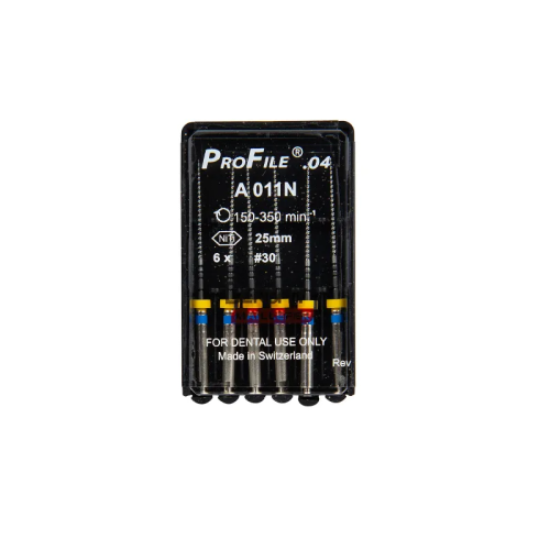 Про-файл № 30 Dentsply с конусностью рабочей части 04 – машинный эндодонтический инструмент, применяемый при лечении кариеса. Он закрепляется в угловом наконечнике и позволяет проходить, расширять и формовать зубные каналы.